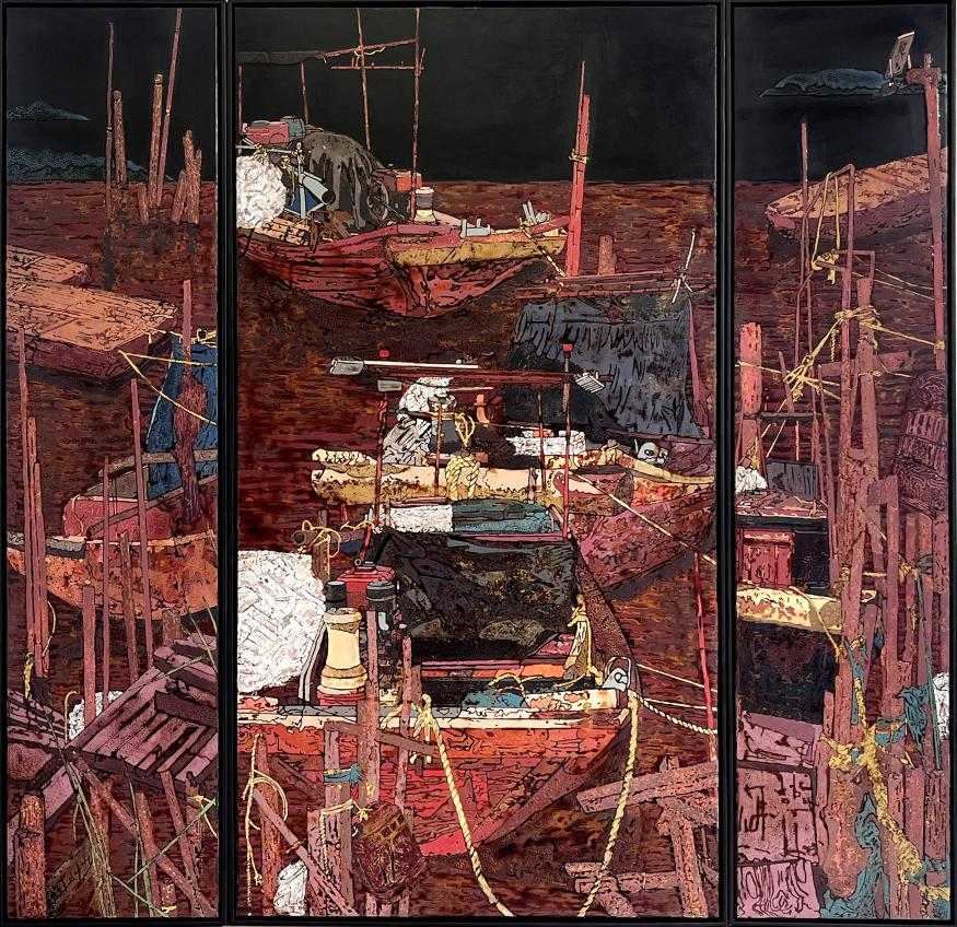 黄苑琪 《渔归》 漆画 150cmx150cm