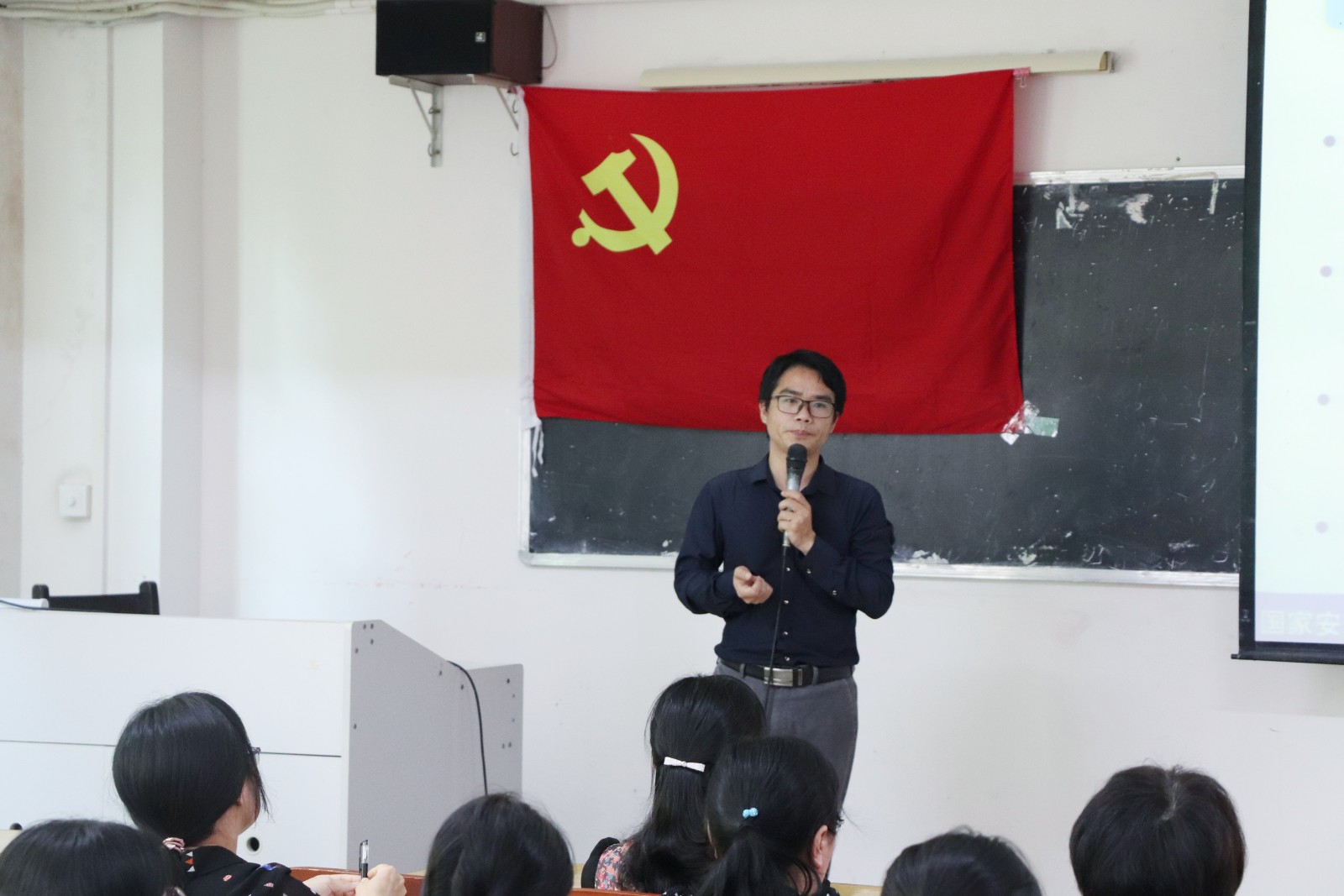 2019年4月25日中午,机关党总支第五支部召开校园安全工作布置学习会,由总支组织委员、学生处副处长黄海峰同志就国家安全意识教育作报告,支部全体党员、入党积极分子参加了座谈会。座谈会由支部组织委员史茹同志主持。