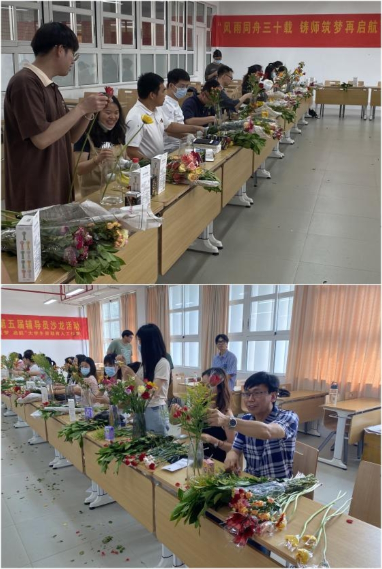 本次沙龙活动主要分为4项内容:新入职辅导员及导师座谈活动、DIY插花活动、多米诺骨牌比拼活动以及活动总结。