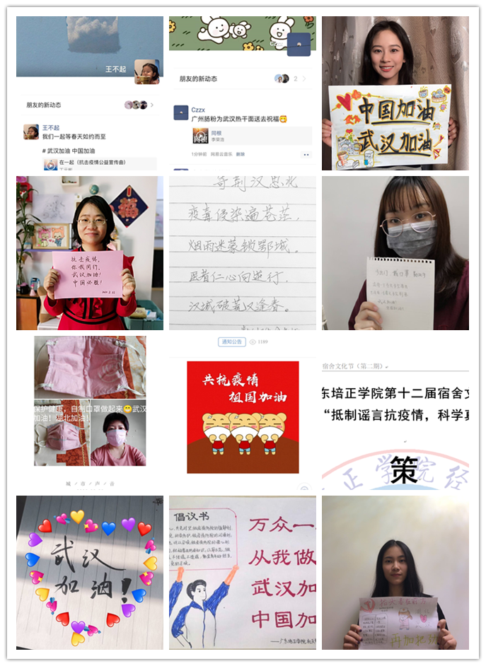 加强思想引领,守牢宣传阵地,做好学生新型冠状病毒肺炎防控精神文明教育。学生处制定《广东培正学院2019-2020学年第2学期思想政治教育计划》明确把加强疫情防控期间的精神文明建设放在本学期思想教育工作的首位,充分利用各类线上平台加强学生的生命安全教育、心理健康教育、社会责任感教育和感恩教育,传递积极正向的健康观念和公民责任。同时,讲好疫情期间奋战在防疫一线的“小”故事和全民战“疫”的“大”故事,传递积极向上的抗“疫”精神。一方面充分运用班级群,班干部群、校园易班网等线上平台引导学生通过中央和省主流媒体、政务新媒体等权威渠道,了解防控信息,学习防控知识,不造谣、不传谣、不信谣,科学理性看待疫情,营造积极乐观、文明理性的网络风气。另一方面组织各种寓教于乐主题教育活动。学生处组织“抗炎防疫”主题作品征集活动,以“抗击疫情,热爱祖国”为主题的宿舍文化节、心理漫画大赛等各类线上精神文明活动;各二级学院、辅导员根据专业和班级特色开展线上班会、为武汉加油、“抗击疫情”朋友圈公益歌曲转发等活动,