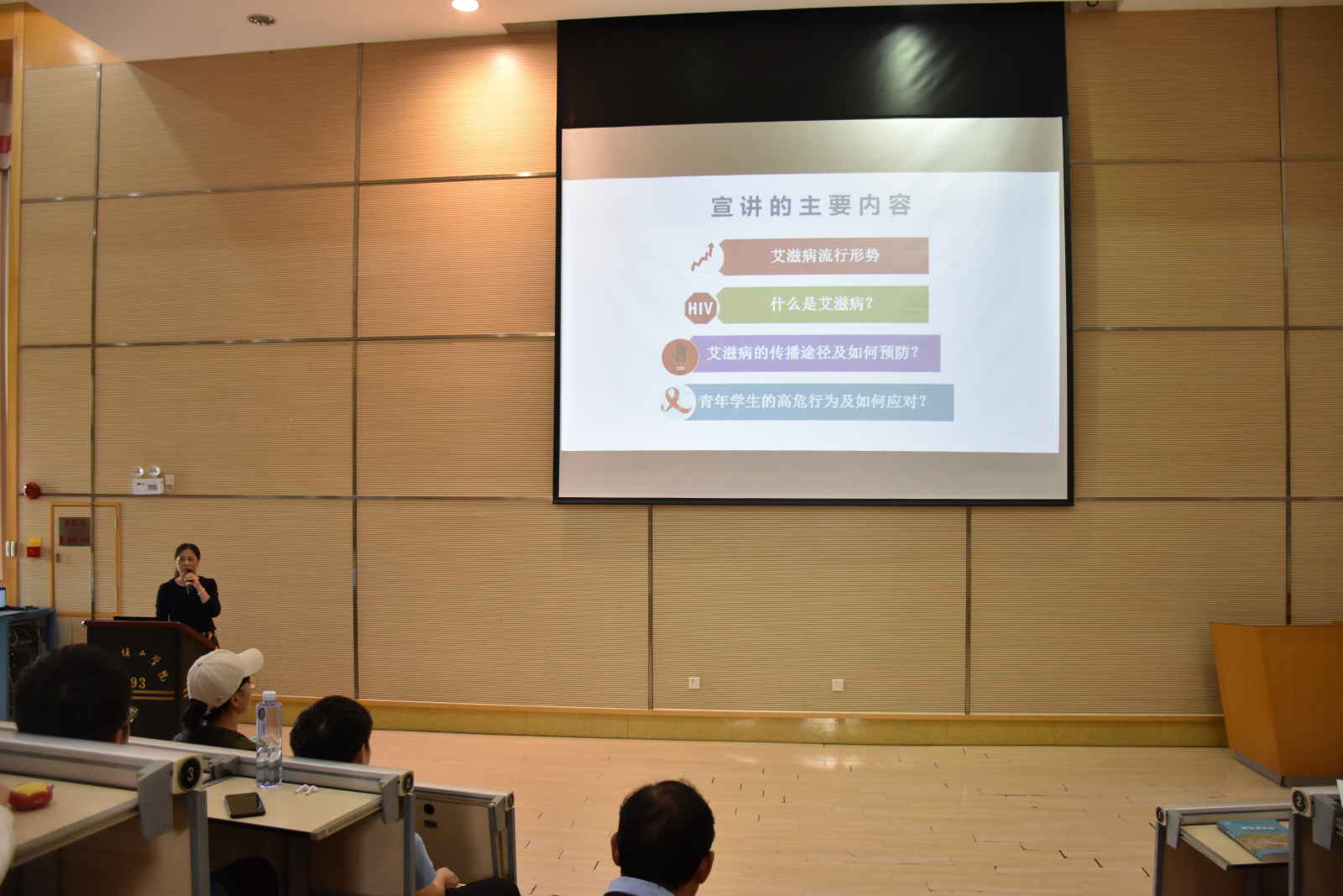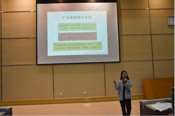 紧接着由青少年同伴教育优秀讲师肖丽婷老师进行预防意外怀孕专题宣讲,肖老师先通过幽默生动的案例宣讲的方式为在场学生普及大学生性行为的基本知识。最后,分享了检测艾滋病的单位名称和防艾知识学习的公众号。