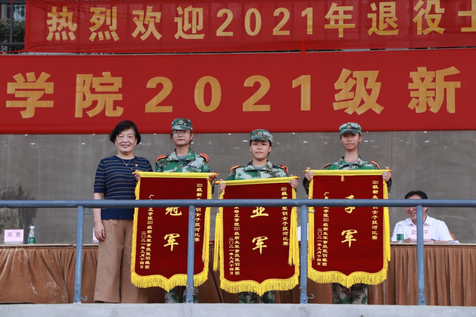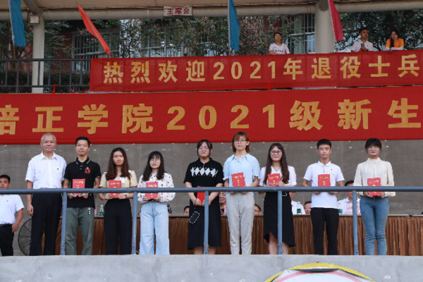 本网讯(学生处 罗钊 撰稿/新闻中心 李燕萍 刘钦 摄影)金秋送爽、丹桂飘香。9月17日上午8时30分,广东培正学院2021年新生军训总结表彰大会暨2021年退役复学学生欢迎仪式隆重举行。大会在雄壮的国歌声中拉开序幕。校长黄崴、党委书记武电平、董事会秘书长马蓁、副校长黄观德、教务长王丽英、校长助理宋宇翔等校领导出席大会。军训团团长、各部门负责人、各二级学院行政副院长、新生辅导员参加了本次大会。此次大会由校长助理邓惠主持。