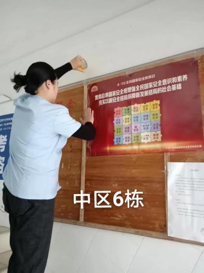 (每栋宿舍楼张贴国家安全海报,图为各区选取的1栋楼悬挂图)
