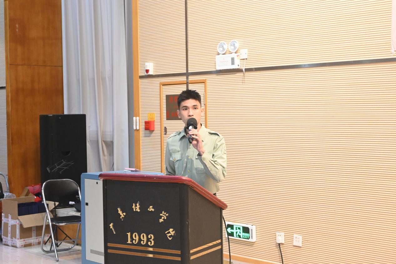 分享会现场,还特别组织了征兵宣传活动,李正滔师兄首先向我们介绍了征兵流程,大家可以在学校所在地,也可以在户籍地进行应征报名。同时,介绍了一些进入军营前的需要完成的事情以及自身所匹配的条件,然后介绍了一些征兵经济补贴政策以及退伍复学政策,还介绍了毕业论文答辩绿色通道。师兄还希望我们保持初心,积极应征,希望每个人都可以有一个属于自己的军旅梦。