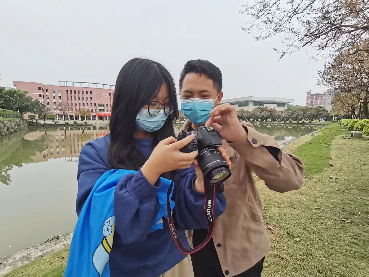 光有理论知识可不行,讲解完理论知识后,叶老师带领成员们到校园内动手拍摄并且对成品进行指导讲解。
