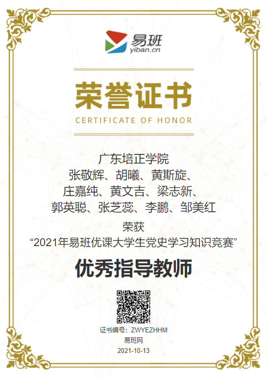在此次活动中,教育部易班发展中心公布“2021年易班优课大学生党史学习知识竞赛”获奖名单,我校荣获“优秀组织奖”荣誉称号,我校10名教师获评此项活动优秀指导教师。